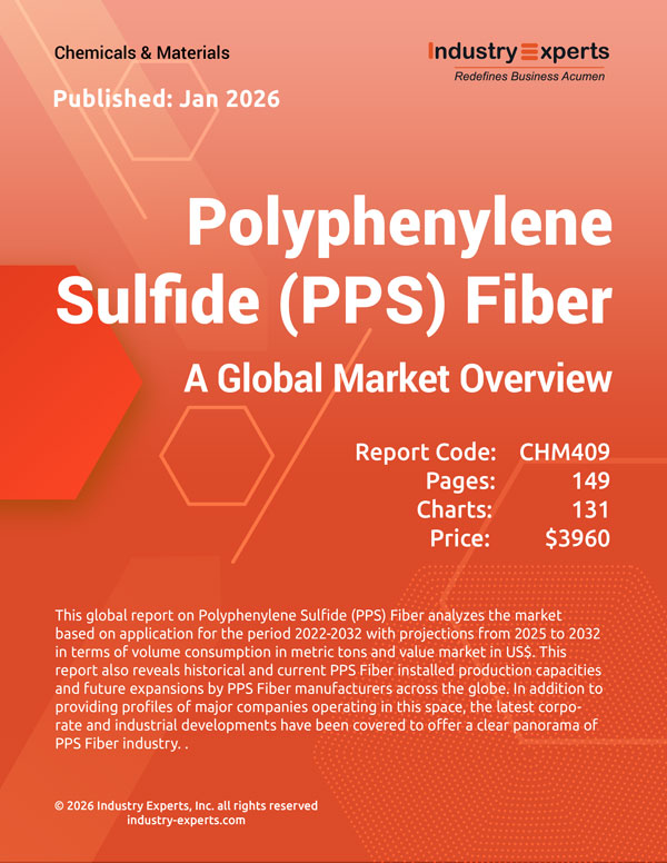 This global report on Polyphenylene Sulfide (PPS) Fiber analyzes the market based on application for the period 2022-2032 with projections from 2025 to 2032 in terms of volume consumption in metric tons and value market in US$. This report also reveals historical and current PPS Fiber installed production capacities and future expansions by PPS Fiber manufacturers across the globe. In addition to providing profiles of major companies operating in this space, the latest corporate and industrial developments have been covered to offer a clear panorama of PPS Fiber industry.