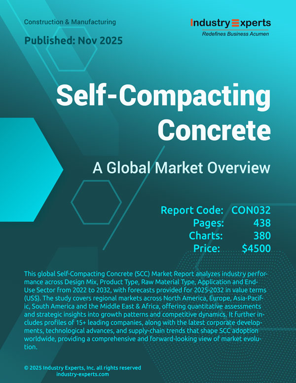 This global report on Self-Compacting Concrete analyzes the market based on Design Mix, Product Type, Raw Material Type, Application and End-Use Sector for the period 2022-2032 with projections from 2025 to 2032 in terms of value in US$. In addition to providing profiles of major companies operating in this space, the latest corporate and industrial developments have been covered to offer a clear panorama of how and where the market is progressing.